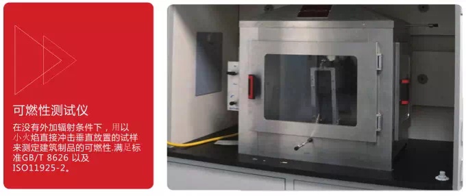 公司拥有国内外知名机构的一流检测设备,具备对《GB 8624-2012 建筑材料及制品燃烧性能分级》中规定的各类建筑建材防火性能检测,为客户提供更准确、更精准的检测数据。