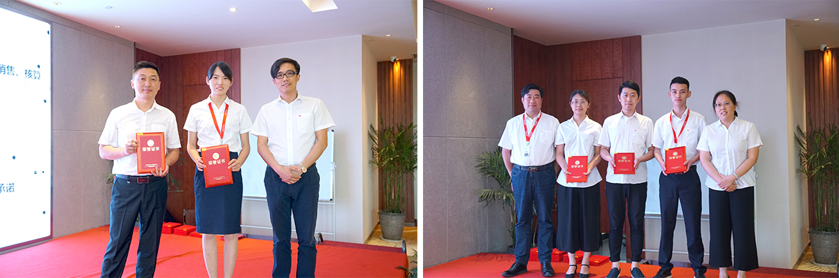 公司对在上半年工作中表现突出的先进个人进行了颁奖表彰,希望他们发挥先进员工的示范作用,在下半年的工作中再接再厉,为公司做出更大的贡献。